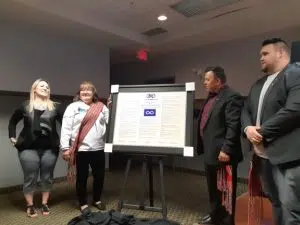 Fort McKay Métis Nation President Ron Quintal and Board of Director showcasing self-governance Constitution in May 2019// Jaryn Vecchio – Harvard Broadcasting