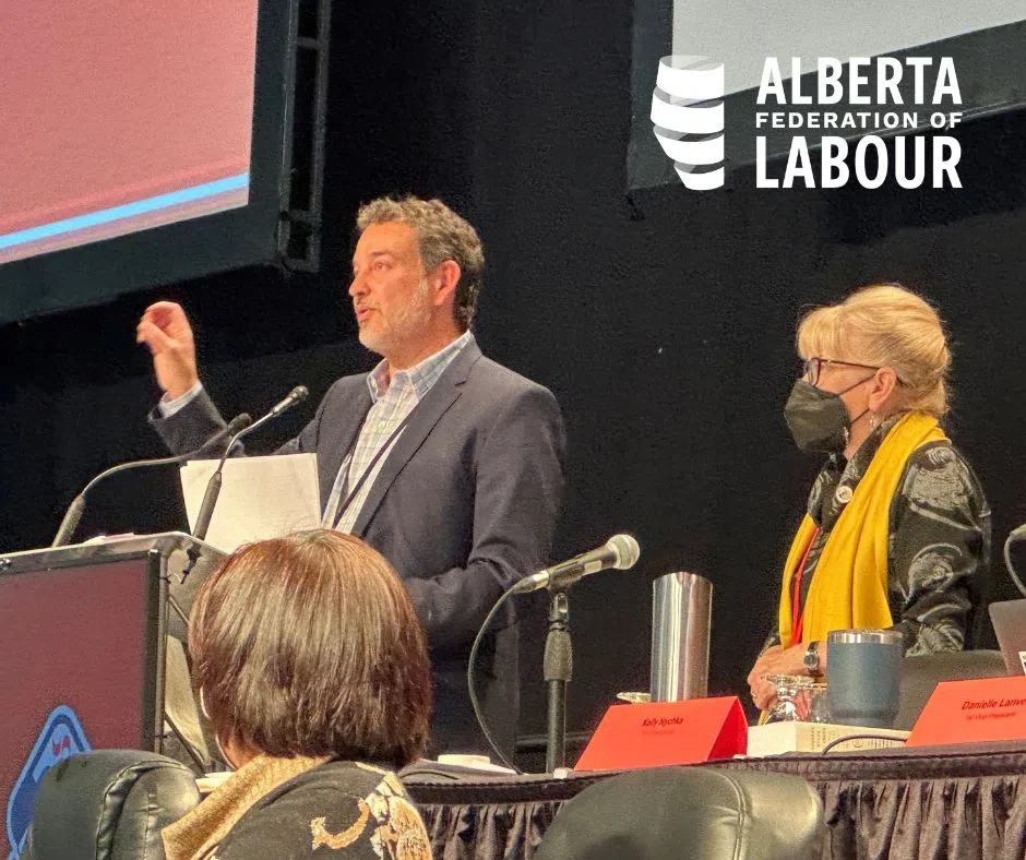 AFL President Gil McGowan speaks to United Nurses of Alberta. -Image via AFL Media Release The Alberta Federation of Labour (AFL) is joining the fray over Alberta's potential exit from the Canada Pens...